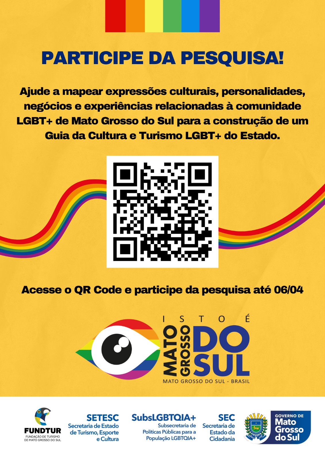 A Fundação de Turismo de Mato Grosso do Sul (Fundtur MS), em parceria com a Subsecretaria Estadual de Políticas Públicas LGBTQIA+, iniciou um mapeamento inédito para identificar, valorizar e dar visibilidade a espaços, experiências e expressões culturais da comunidade LGBT+ no estado. A ação vai subsidiar a elaboração do Guia da Cultura e Turismo LGBT+ de Mato Grosso do Sul, iniciativa que busca fortalecer a promoção do estado como um destino acolhedor, diverso e plural, evidenciando a riqueza cultural sul-mato-grossense.